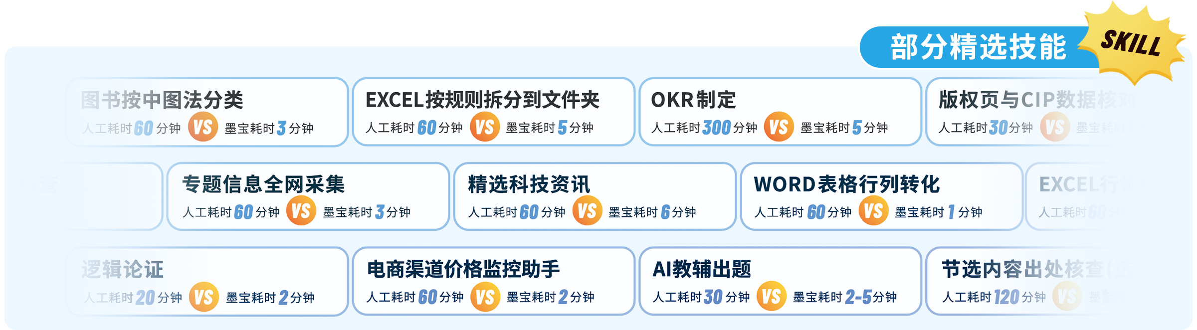 500+技能覆盖7大工作场景