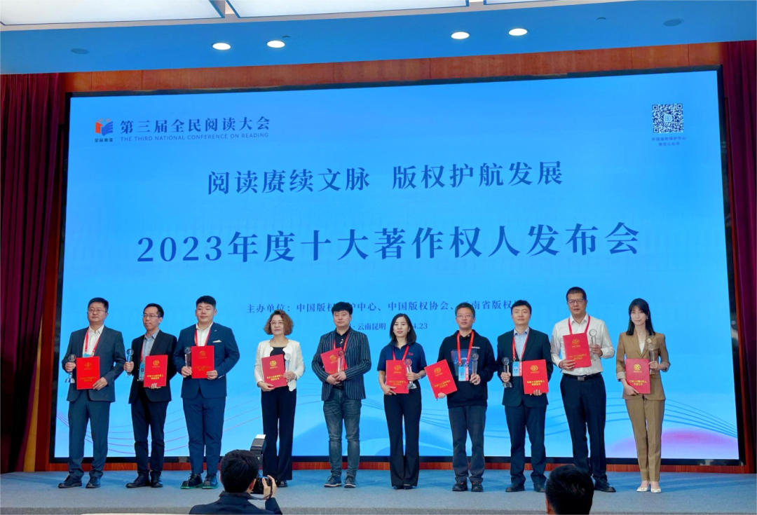 第29个“世界图书与版权日”(世界读书日)之际,数传集团在第三届全民阅读大会“2023年度十大著作权人发布会”上,荣获中国版权保护中心颁发的“2023年度十大著作权人”称号,这是数传集团在著作权领域获得的一项重要国家级荣誉!