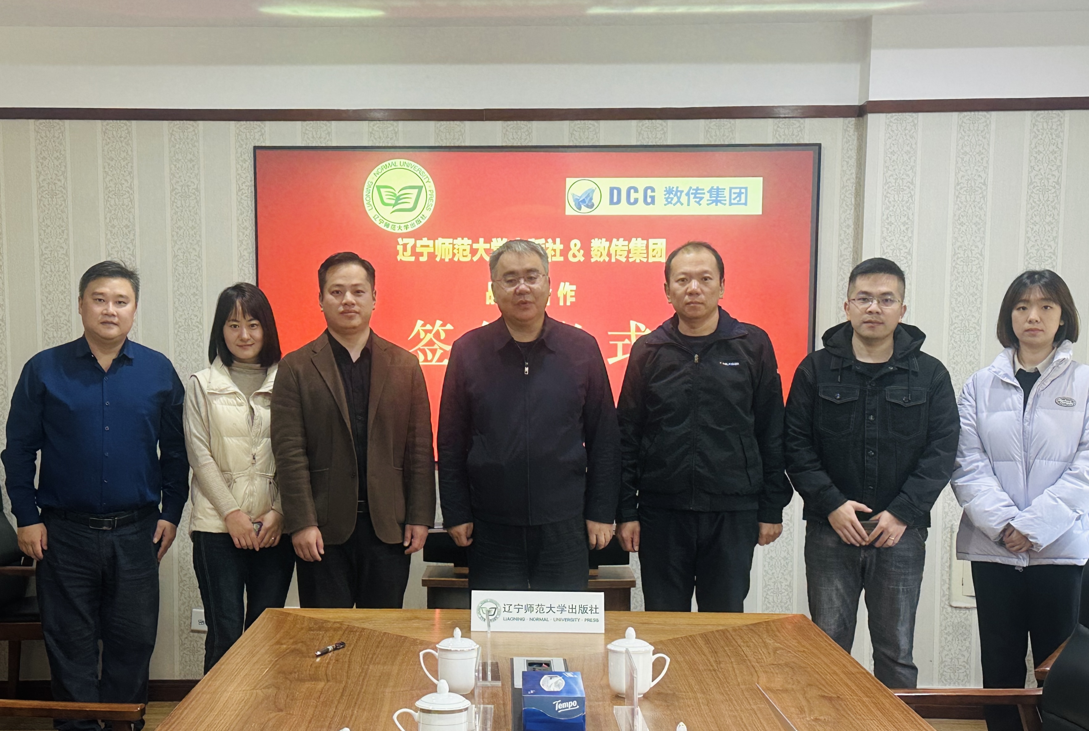 辽宁师范大学出版社社长王星、副社长任飞、社长助理孙琳、融合出版中心主任徐利军,数传集团营销部东北大区总监柯斌出席了本次签约仪式。