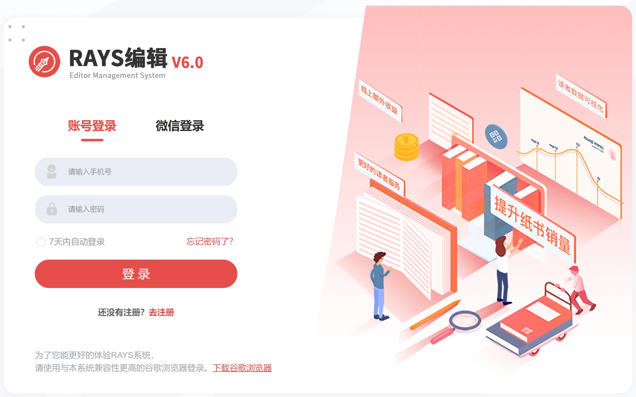 访问RAYS编辑端(adviser.5rs.me),新用户需先完成账号注册;